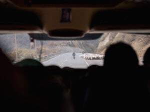 Dans l’heure qui suivra, le minivan sera arrêté deux fois sur le bord de la route par des hommes armés jusqu’aux dents, fusils-mitrailleurs et casques lourds, qui nous enverrons nous faire à nouveau contrôler. Deux réveils un peu difficiles à gérer, surtout pour un de nos volontaires pas du tout habitué à ce genre de comité d’accueil : « Tu penses que ça va être comme ça jusqu’à la fin ? Je ne suis pas sûr de trouver ça très rigolo », murmure-t-il en remontant dans le minivan après le 2e arrêt. Finalement, ça sera le dernier, et nous pourrons finalement somnoler plusieurs heures d’affilée.