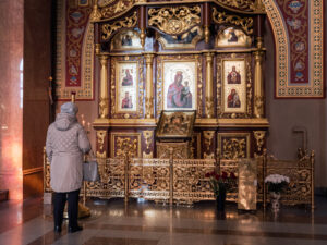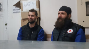 Dans les couloirs d’un des hôpitaux où nous déposons deux gros cartons de médicaments, nous croisons deux infirmiers qui font une pause au milieu des patients qui attendent. L’un d’eux porte une magnifique barbe et les cheveux longs sous son petit couvre-chef. C’est un moine du monastère de Solovetski, célèbre monastère situé dans le nord-ouest de la Russie, sur la mer Blanche. Quand la guerre a éclaté, il s’est porté volontaire pour venir aider dans un hôpital ici à Donetsk, à plus de 2500 km de son monastère. Nous lui demandons si on peut faire une photo, il accepte avec un sourire un peu gêné qui semble dire « Pourquoi vous voulez une photo de moi ? Je n’ai rien fait de spécial… »