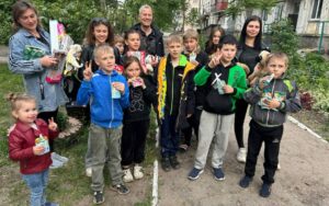 À Pervomais’k, nous distribuons des jouets pour les enfants et de la nourriture pour leurs familles, ainsi que du nécessaire de premier soin. Ça a sans doute été la distribution la plus émouvante de ce séjour. D’abord parce que les enfants ont été très curieux, posant beaucoup de questions, l’un d’eux demandant même à nos volontaires s’il pouvait repartir avec eux en France… Mais aussi parce que c’est dans ces mêmes rues qu’il y a 10 ans Nikola Mirkovic a fait sa toute première distribution d’aide humanitaire dans le D0nbass en guerre !